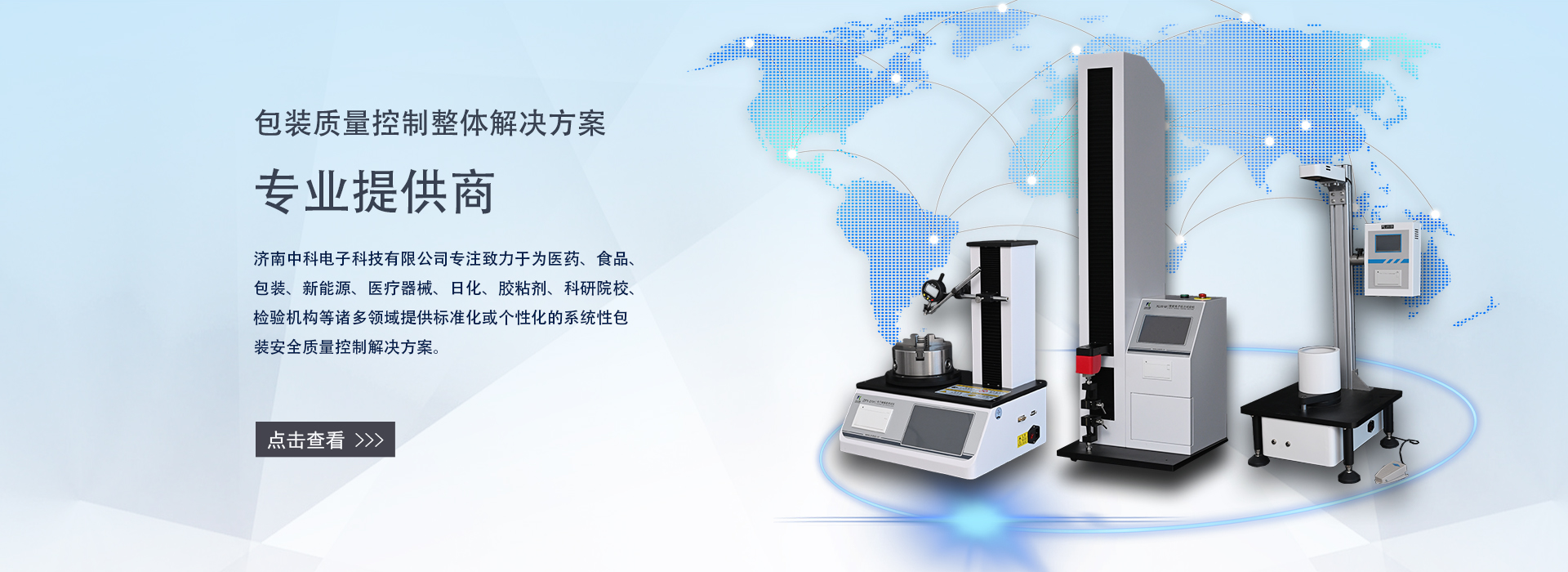 濟南中科電子科技有限公司是一家集包裝及膜材檢測儀器的研發(fā)、制造、銷售和服務為一體的專業科技公司。專注致力于為食品、醫藥、包裝、新能源、醫療器械、石化、日化、膠粘劑、科研院校、檢驗機構等諸多領域提供標準化或個性化的系統性包裝及膜材質量控制解決方案。